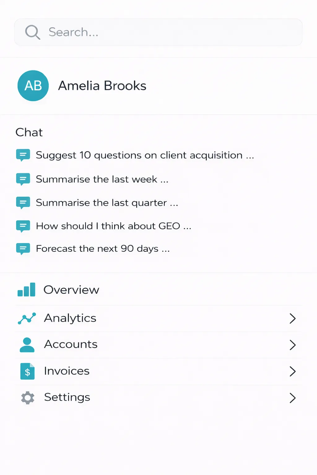 A unified, data-driven view delivered through an intuitive conversational interface - connecting every corner of the business and unlocking instant access to capital.